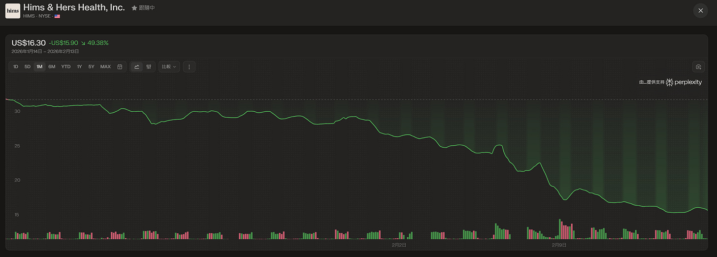 一方面增長放緩,另一方面監管更嚴同時疊加各種法律風險。NVO未必能勝訴,但必然拖慢Hims的成長,公司同時要面對放緩,監管,法律戰。難啊...